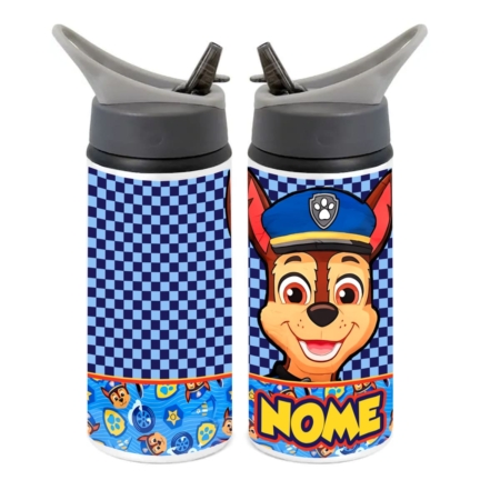 • Squeeze de Alumínio Patrulha Canina Chase Personalizado com Canudo Volta às Aulas