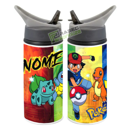 • Squeeze de Alumínio Pokémon Personalizado com Canudo Volta às Aulas