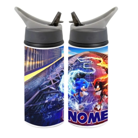 • Squeeze de Alumínio Shadow Personagem Sonic Personalizado com Canudo Volta às Aulas