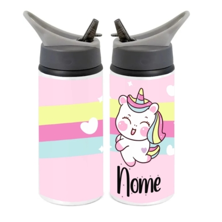• Squeeze de Alumínio Unicórnio Personalizado com Canudo Volta às Aulas